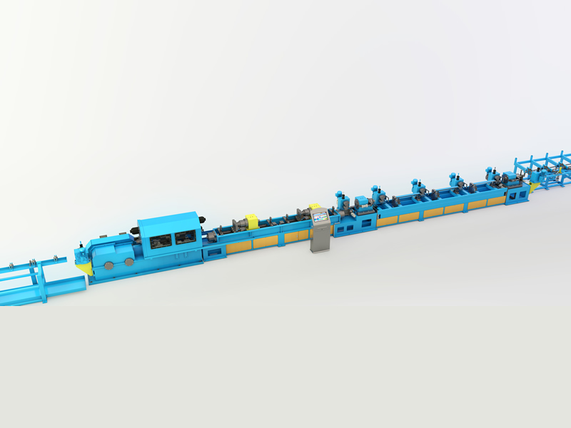 Composition and characteristics of full-automatic high-speed cold rolling tube machine:The full-automatic high-speed cold-rolled pipe mill consists of feeding mechanism, core rod device, front and rear core rod Chuck device, intermediate bed body, feeding bed body, machine base box, main transmission device, discharging mechanism, cooling system, automatic control system, etc. Feeding mechanism to achieve stacking, to reverse material, through the front Chuck, push the hair broken pipe to the middle bed body, the front and rear Chuck work alternately, the middle bed body feeding to bed body feeding; Send bed body double feeding to the car to work alternately, send the blank pipe to the roll device of the base box for rolling; After the rolling is completed, the discharging mechanism will quickly pull out the finished pipe and to reverse material to the stock collecting rack. From the stacking rack to the quality control to the collecting rack, the rough tube can be automatically fed, fed, continuously rolled and discharged without stopping cycle.